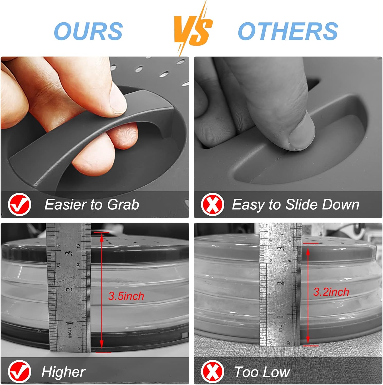 Item Name: Microwave oven lid Color: Charcoal Material: Food Grade silicone & plastic , BPA-Free Cover Size: 10.6inch x 3.8inch Mat Size: 10inch