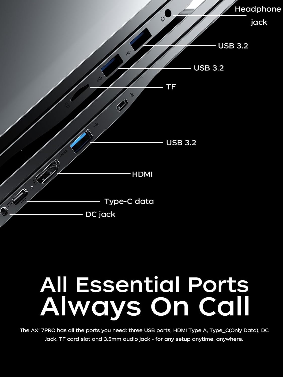 【 Powerful Performance 】 The MALLRACE AX17PRO AMD Ryzen 3 Laptop is equipped with the latest amd ryzen 3 4300U (4C/4T, 6MB Cache, base frequency 2.7GHz) With a maximum frequency of 3.7GHz, it leads the Intel N150 by an average of about 20% to 30% in overall performance, where the advantage is significant.