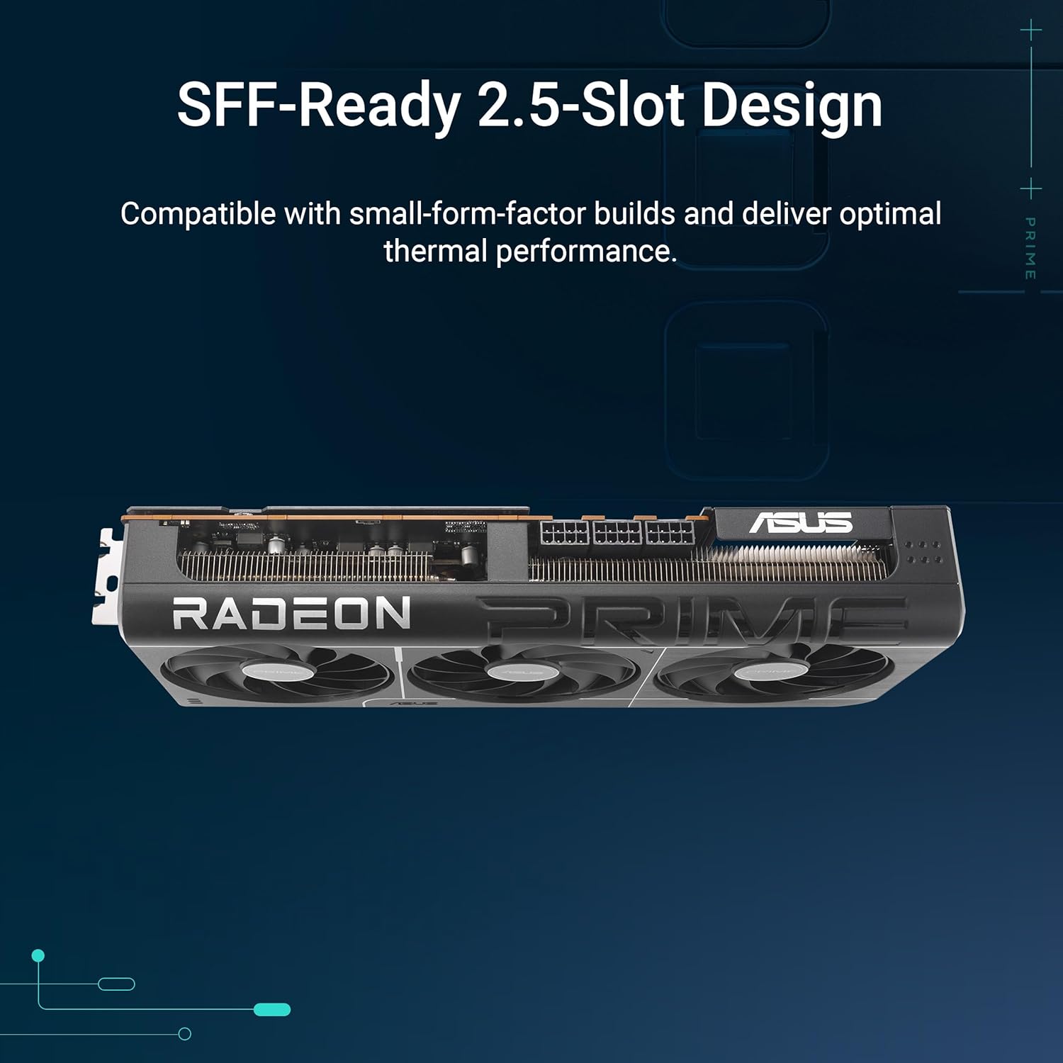 ASUS Prime Radeon™ RX 9070 XT OC Edition Graphics Card (PCIe 5.0, HDMI/DP 2.1, 2.5-slot design, axial-tech fans, dual ball fan bearings, dual BIOS, ASUS GPU Guard).