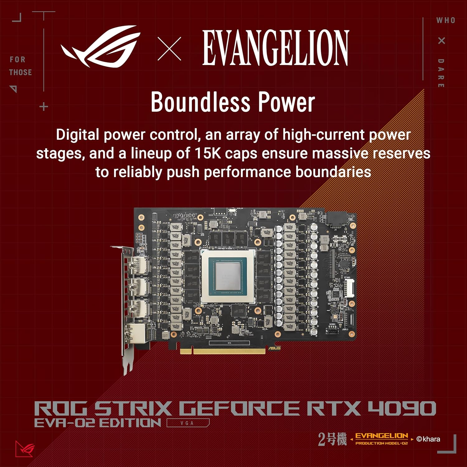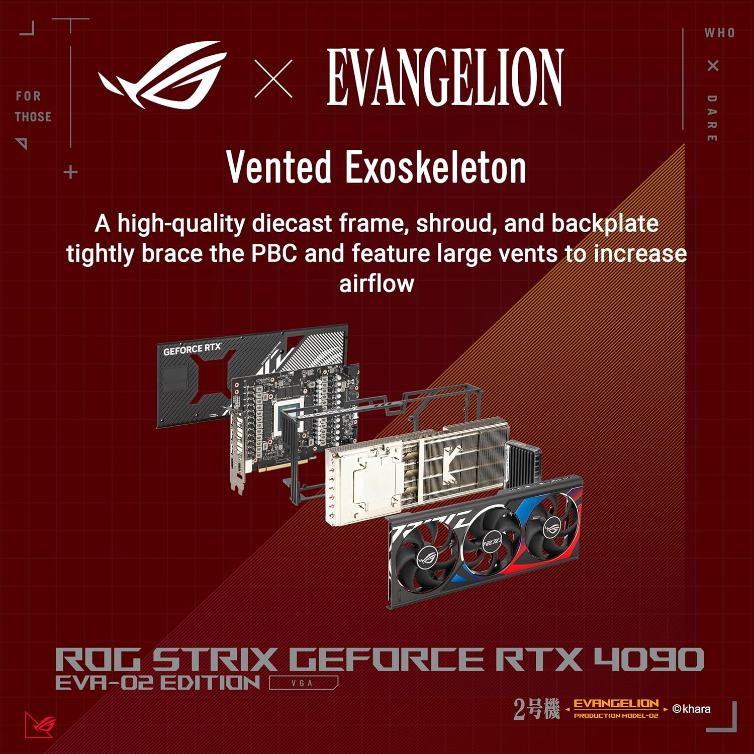 Experience unparalleled gaming with the ASUS ROG Strix NVIDIA GeForce RTX 4090 OC EVA-02 Edition. Discover real-time ray tracing and AI-enhanced graphics, cooled by the new vapor chamber milled with heat-spreaders and new Axial-tech fans for even lower GPU temps. Elevate visuals to 4K excellence, conquer heavy workloads, and unlock innovation like never before with this powerhouse graphics card.