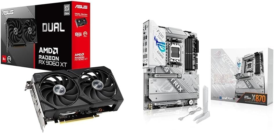 Bundle of ASUS Dual Radeon™ RX 9060 XT 8GB GDDR6 Graphics Card + ASUS ROG Strix X870-A Gaming WiFi AMD AM5 X870 ATX Motherboard WiFi 7