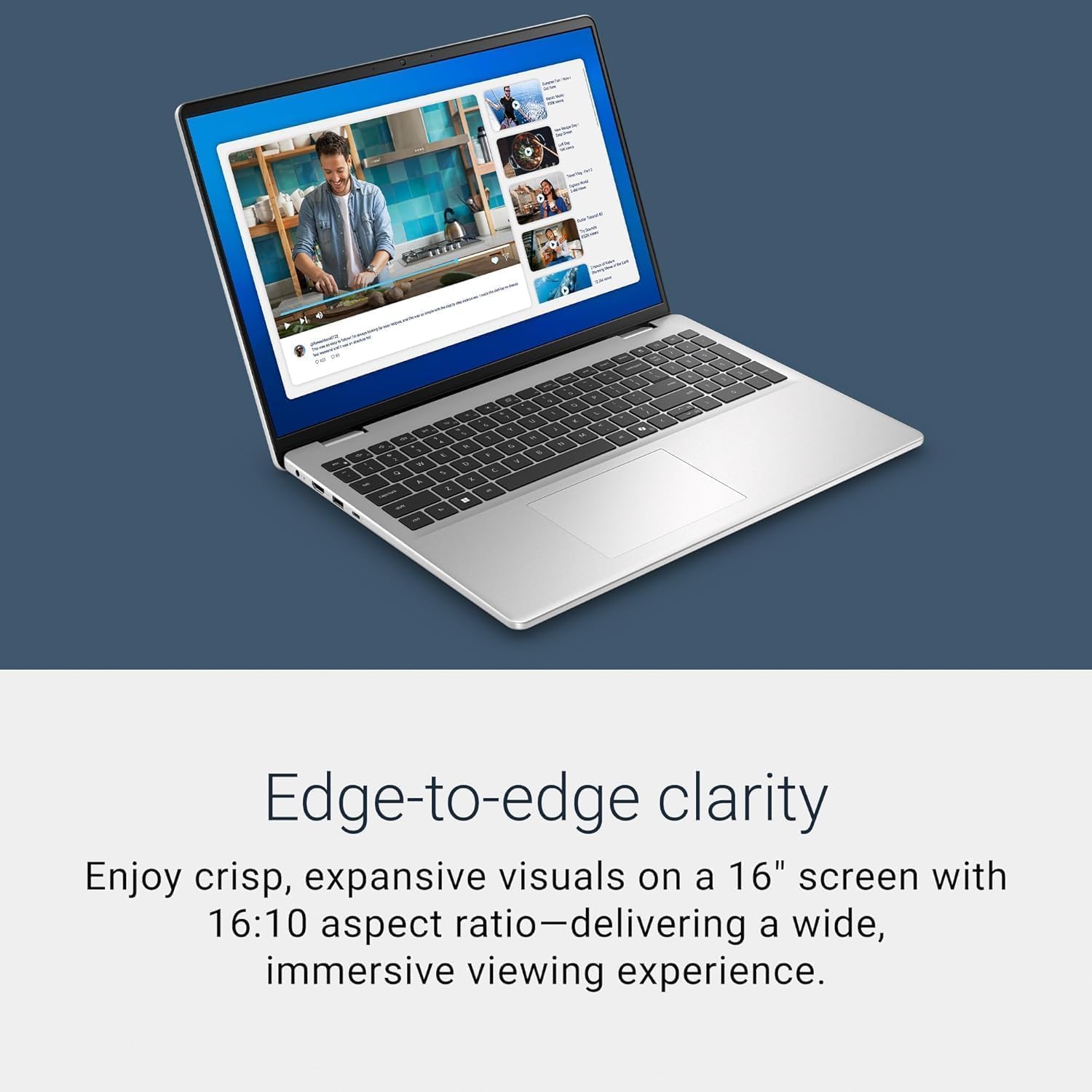 GENERAL INFORMATIONBrand: DellSeries: Dell 16 Laptop DC16251Model: LDC16251-7247SLV-PUSColor: Platinum SilverOperating System: Windows 11 ProPROCESSORCPU: Intel Core 7 150UNumber of Cores: 10Number of Threads: 12CPU Boost Clock Frequency: 5.4 GHzL3 Cache: 12 MBGRAPHICSGPU: Intel Arc GraphicsDISPLAYScreen Size: 16 inchesResolution: 1920 x 1200 (FHD+)Touch Screen: YesScreen Type: WVA, ComfortView Plus SupportBrightness: 300 nitsAspect Ratio: 16:10MEMORY & STORAGEMemory: 32 GB DDR5 RAM 5200 MT/sStorage: 1 TB PCIe NVMe M.2 SSDPORTS1 x USB 3.2 Gen 2 Type-C (DisplayPort/PowerDelivery)2 x USB 3.2 Gen 1 Type-A1 x HDMI 1.41 x Headphone/Microphone combo1 x SD Card ReaderWIRELESSWi-Fi 6E (2×2/160) Gig+Bluetooth 5.3FEATURESAudio Technology: Waves MaxxAudio Pro, Dolby Atmos CoreWebcam: 1080p FHD with privacy shutter + dual array microphonesKeyboard: Carbon Black Backlit Keyboard with Copilot Key and Numeric KeypadSecurity: Fingerprint Reader, TPM 2.0Microsoft Copilot: YesBATTERY LIFEBattery Type: 4-Cell 54WHrFast Charge: ExpressCharge (80% in 60 minutes)DIMENSIONSWidth: 14.05 inchesDepth: 9.82 inchesHeight: 0.64 inchesWeight: 4.12 lbsIncludedBacklit Keyboard: YesNumeric Keypad: YesOptical Drive Type: NoneSTATEMENTOriginal Seal is opened for upgrade ONLY. If the computer has modifications, then the manufacturer box is opened for it to be tested and inspected and to install the upgrades to achieve the specifications as advertised.