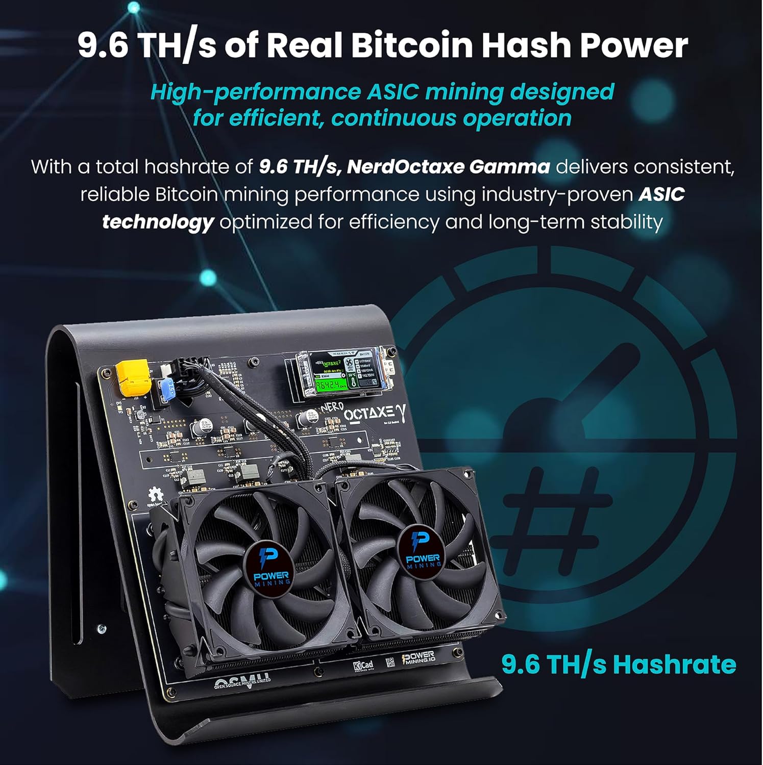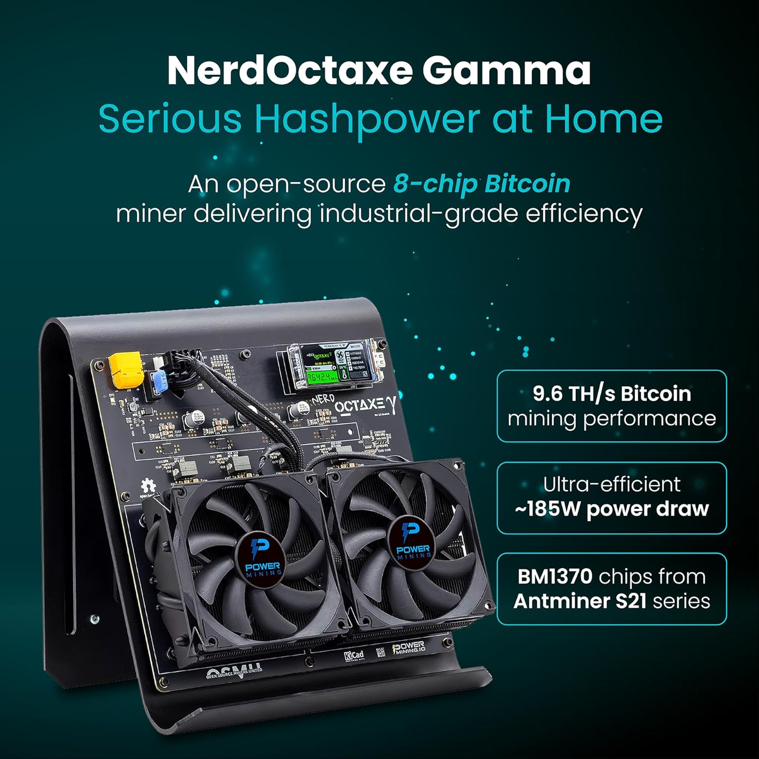 NerdOctaxe Gamma 9.6 TH/s Bitcoin ASIC Miner – Open-Source Home Miner with BM1370, Wi-Fi & USB-C, Complete Kit, Power Supply & Stand