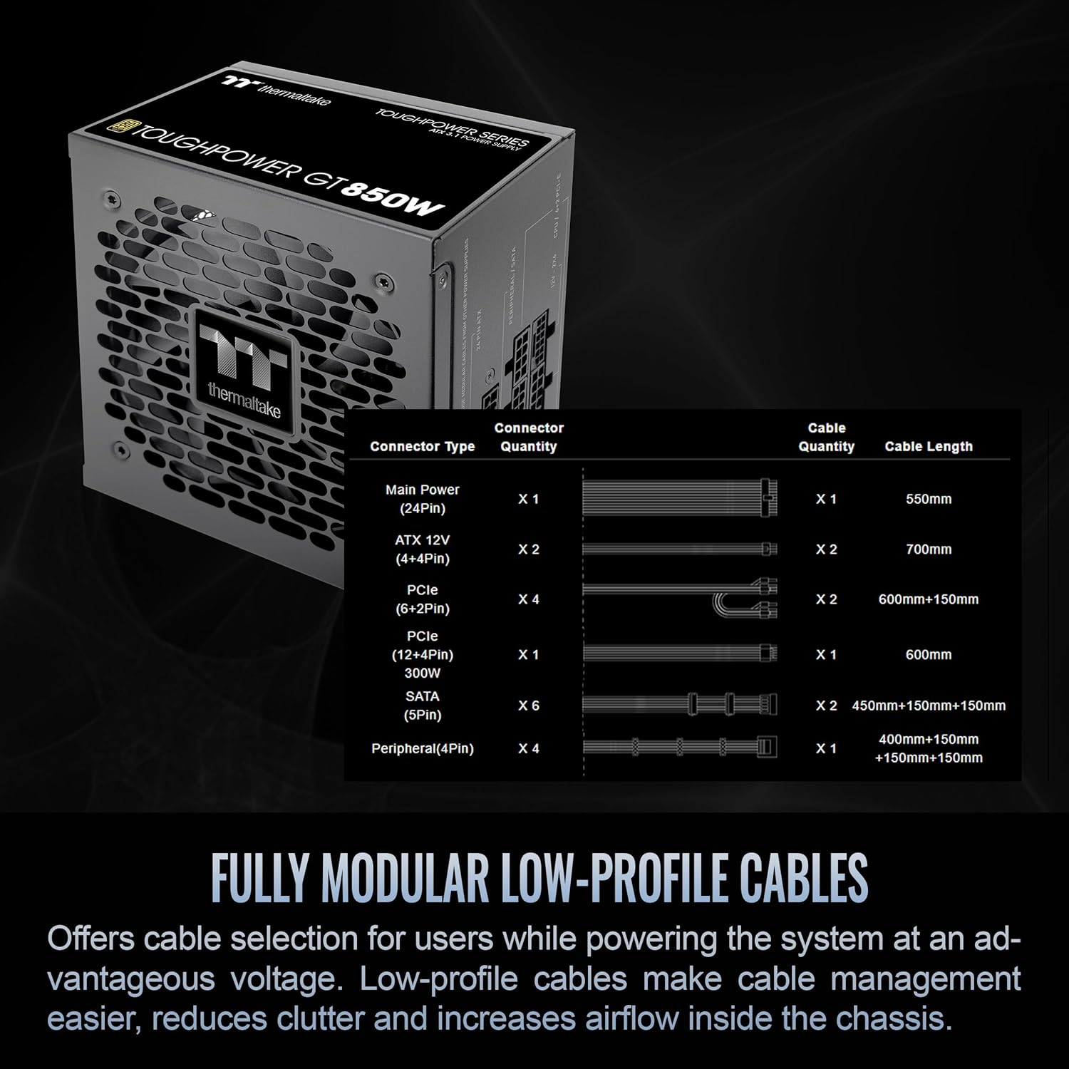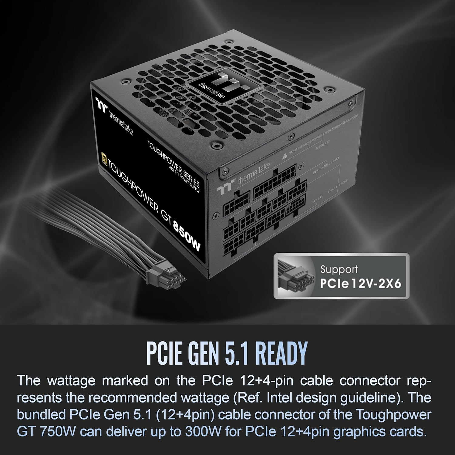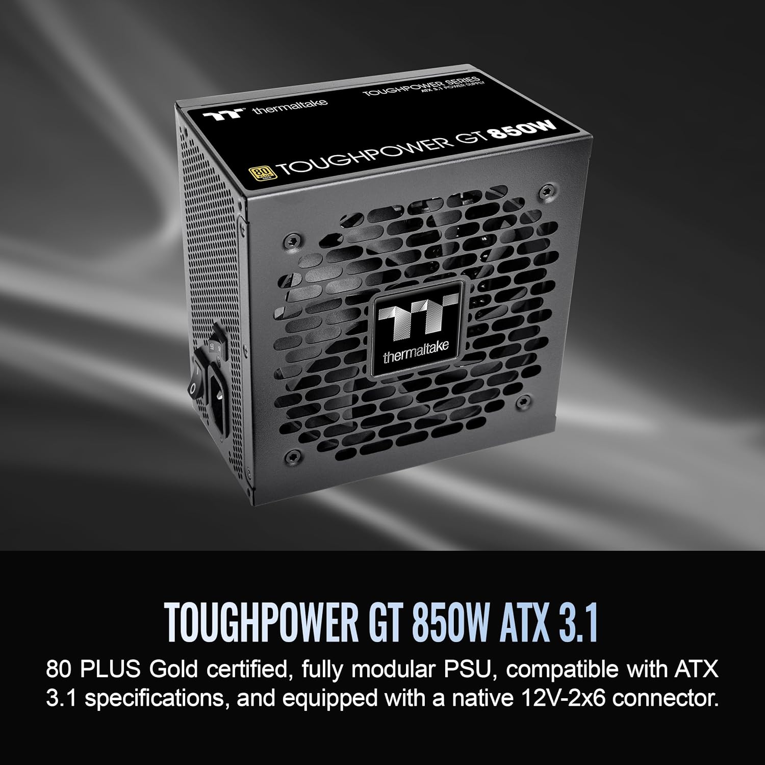 Thermaltake Toughpower GT 850W ATX 3.1 Standard Power Supply; 80 Plus Gold Efficiency; Smart Zero Fan; Native 450W PCIe 5.1 Connector; PS-TPT-0850FNFAGU-3; 5 Year Warranty
